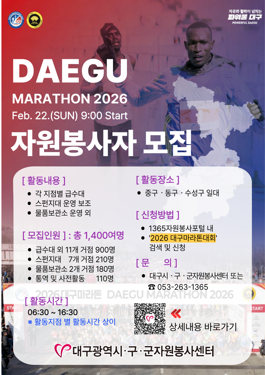 「2026대구마라톤 대회」 물품보관소 청년 자원봉사자 모집